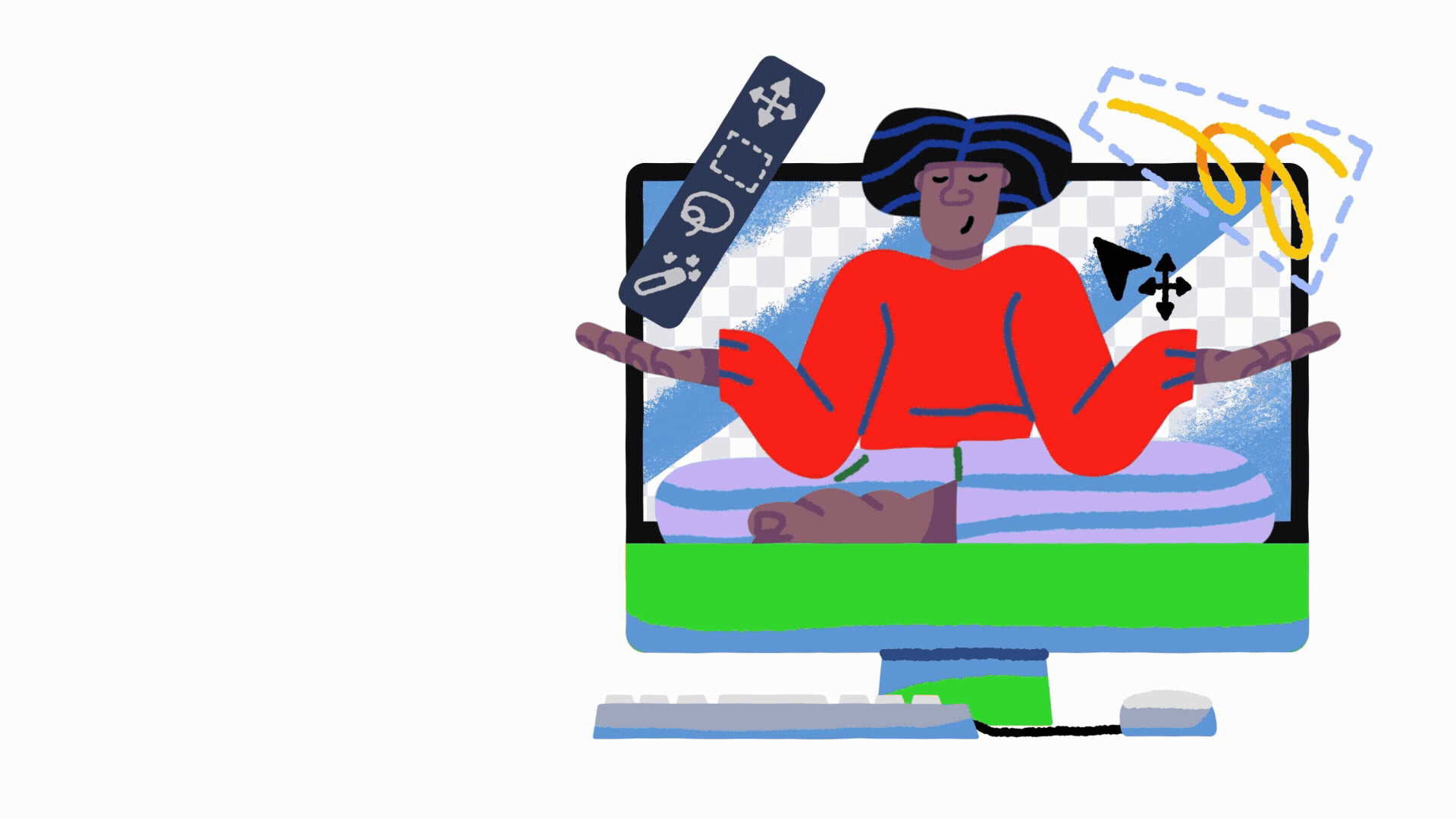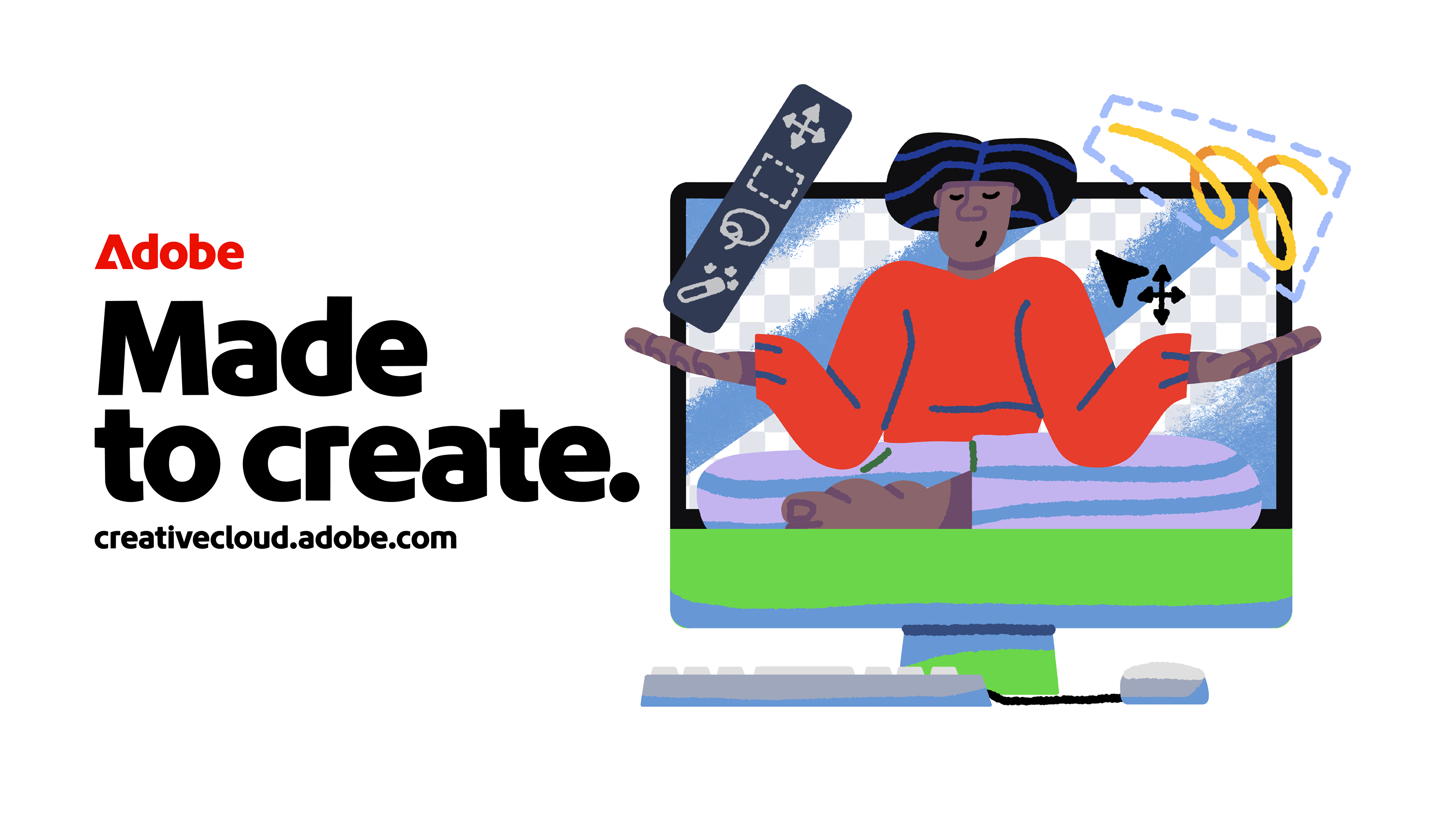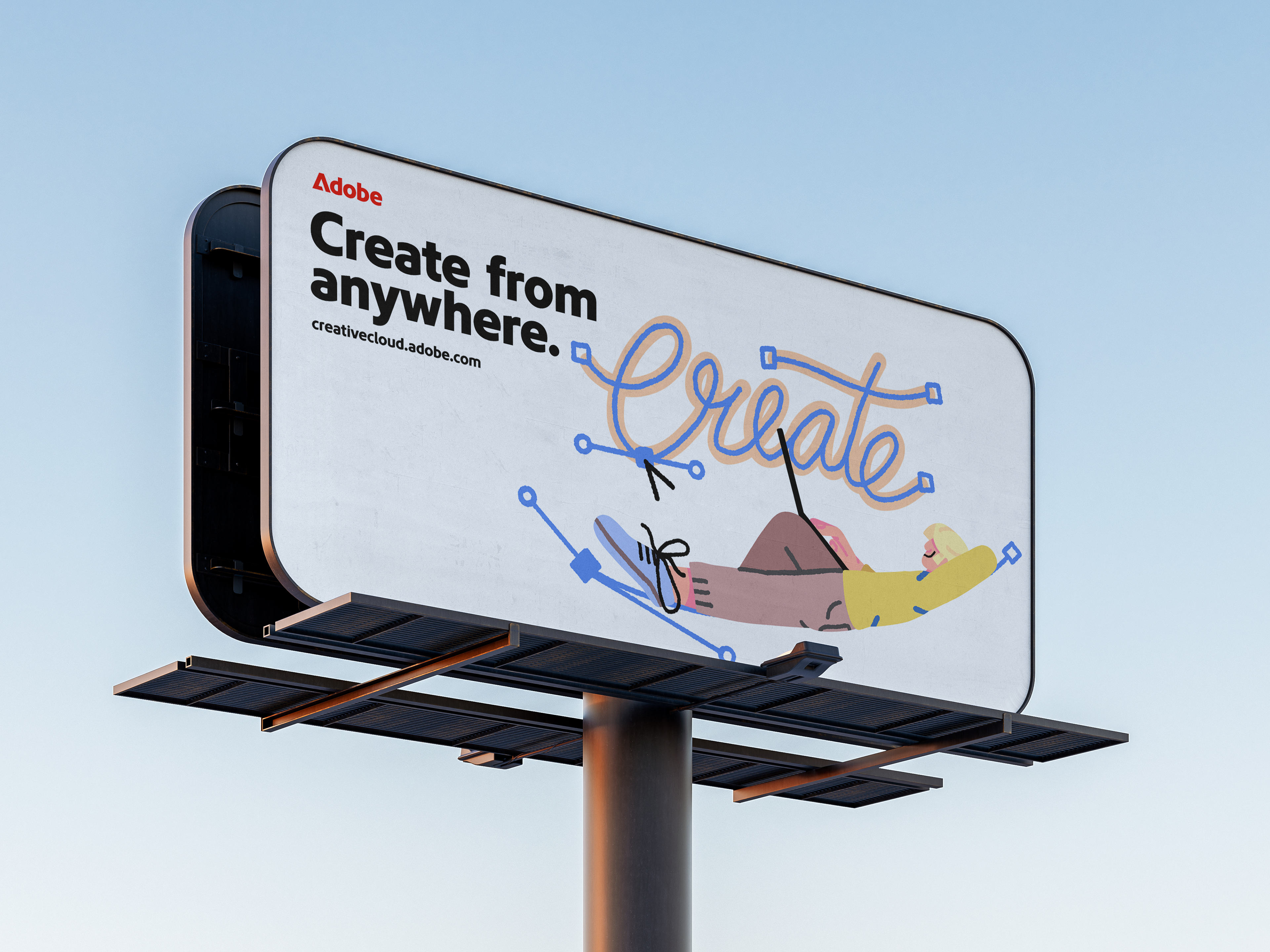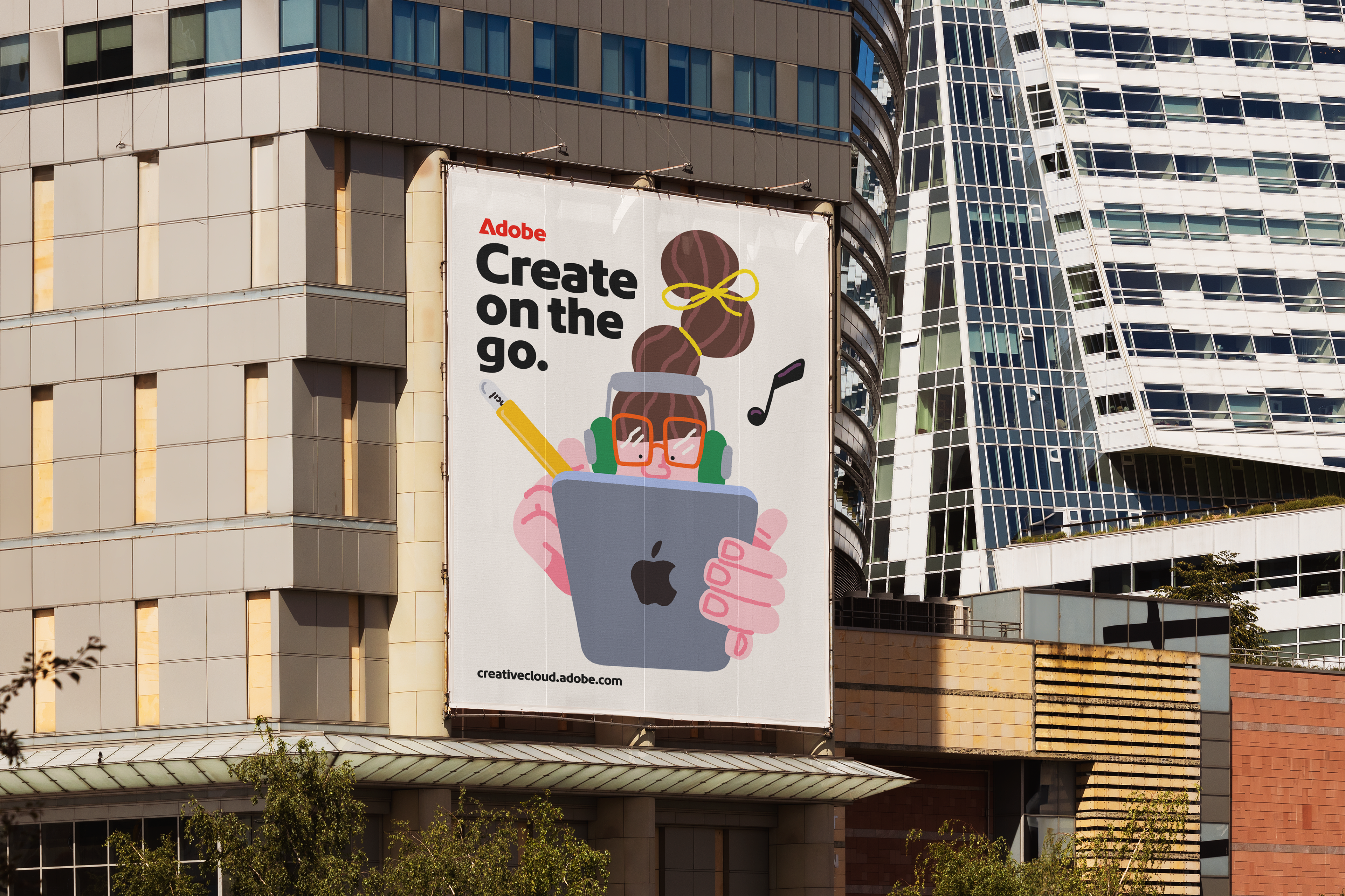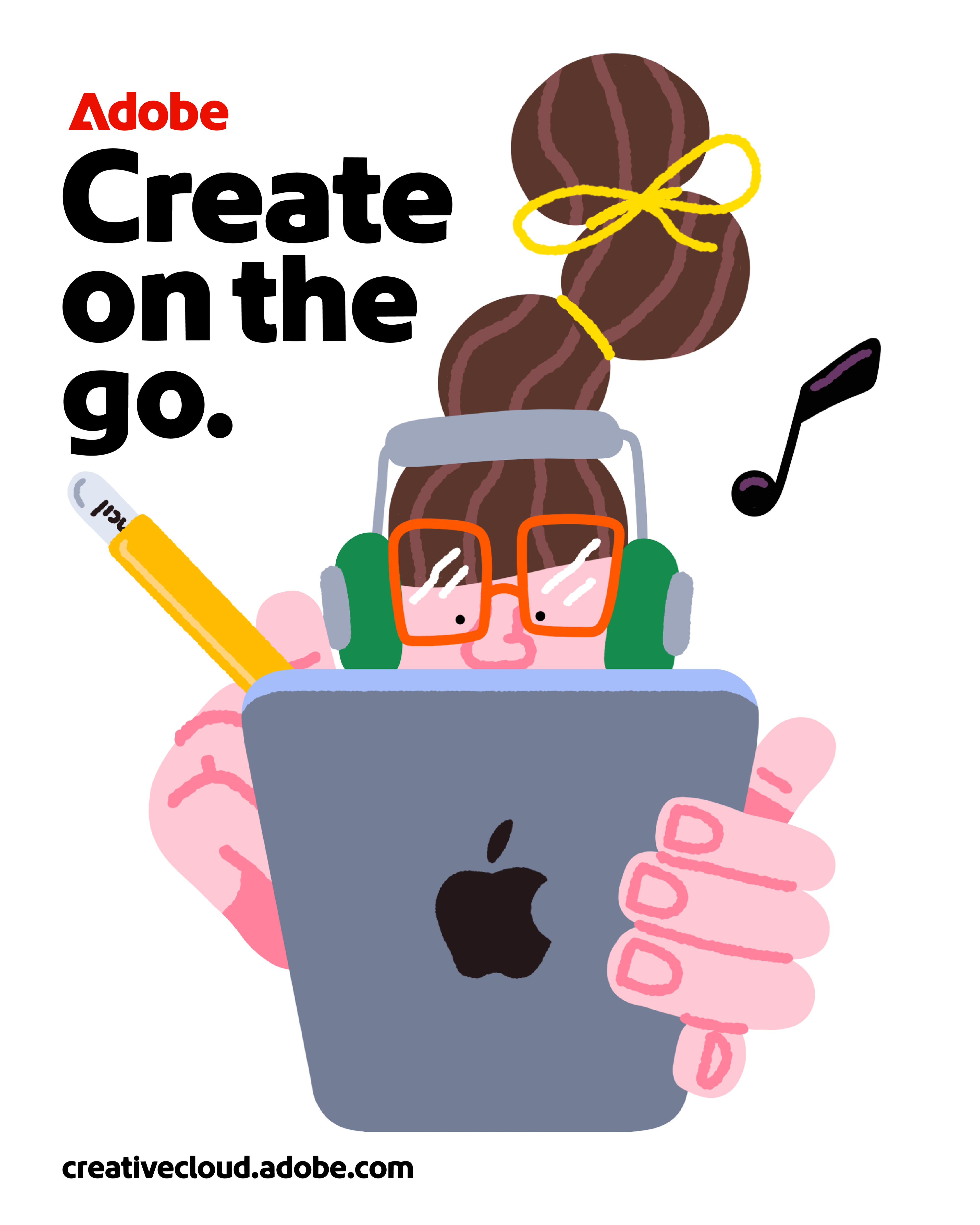 This illustration series explores the idea that creativity isn’t tied to a place, it happens wherever life does. Inspired by Adobe’s "Made to Create" and its creative tools, the project depicts characters creating in everyday, intimate, and unexpected moments, with interfaces and symbols integrated naturally into their environments.