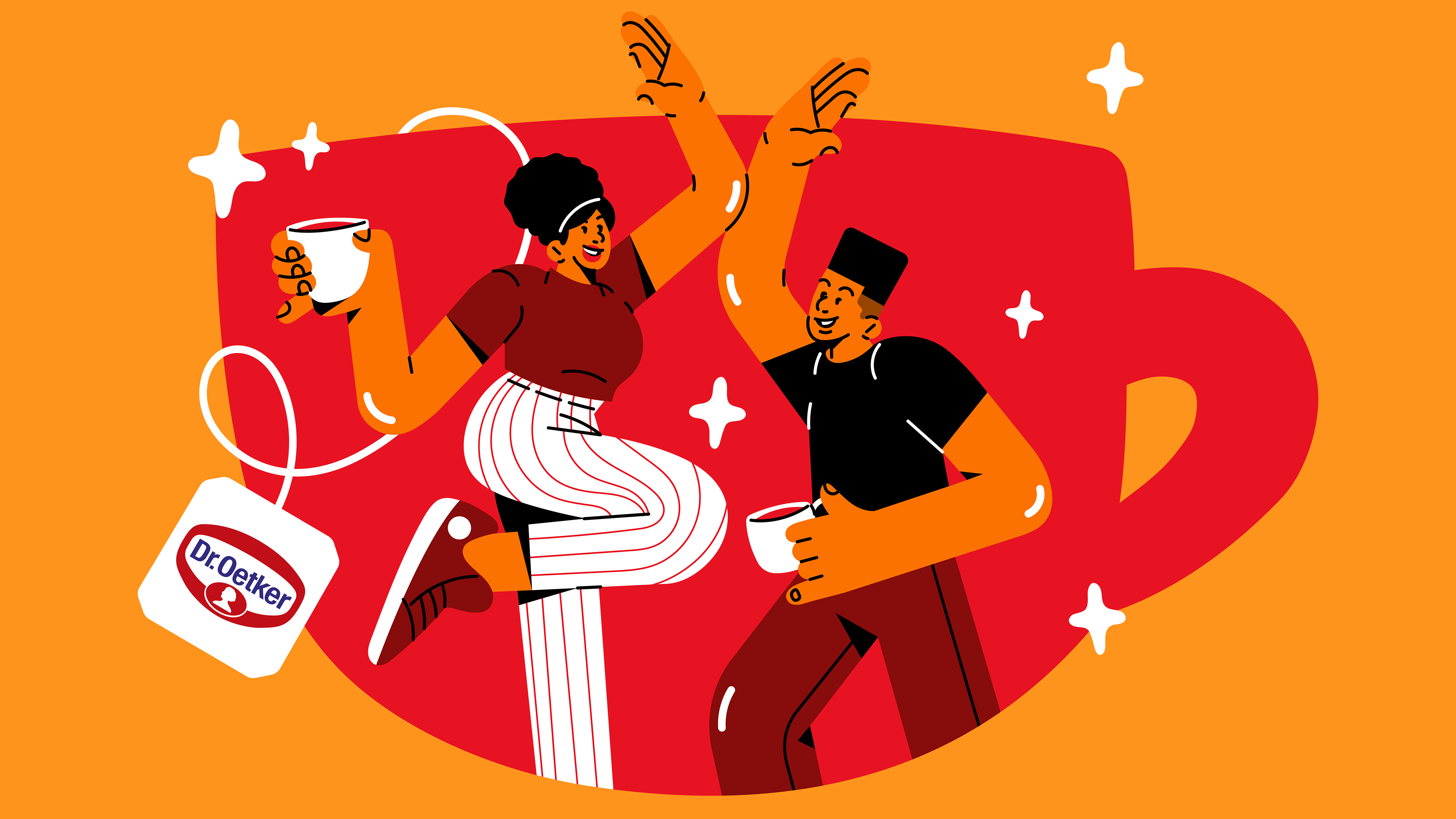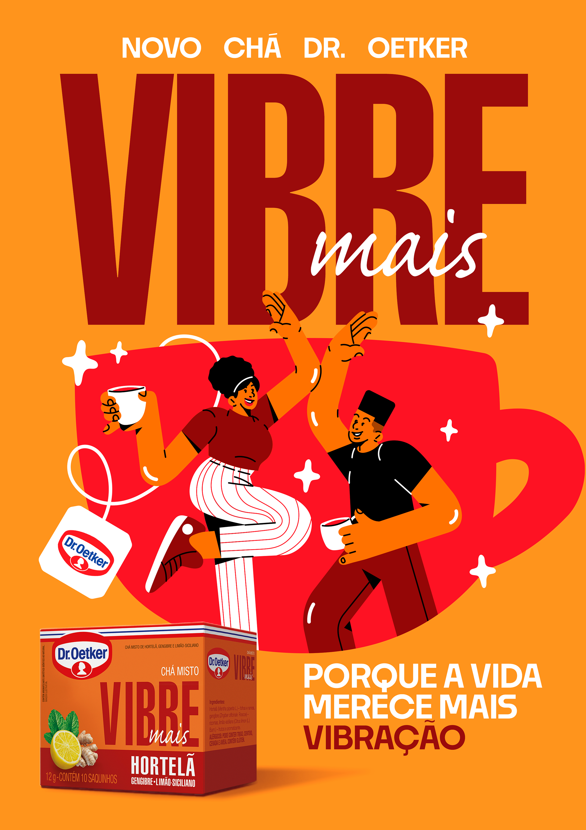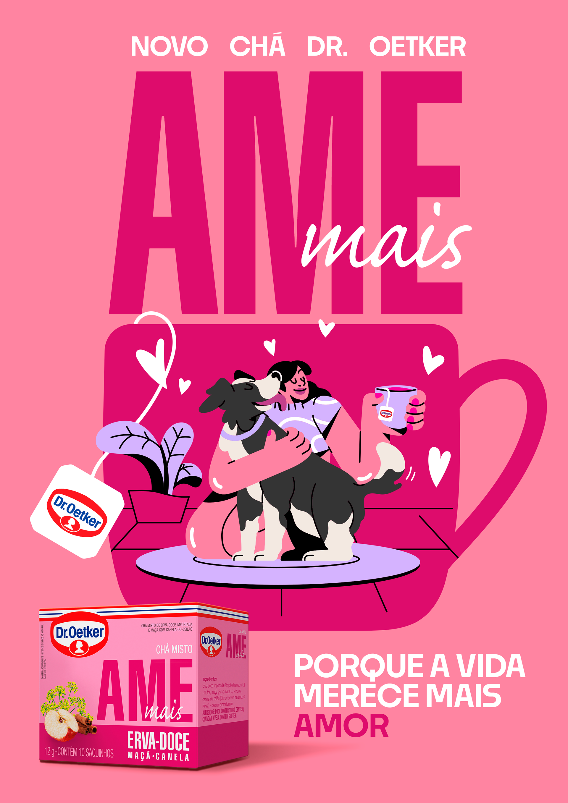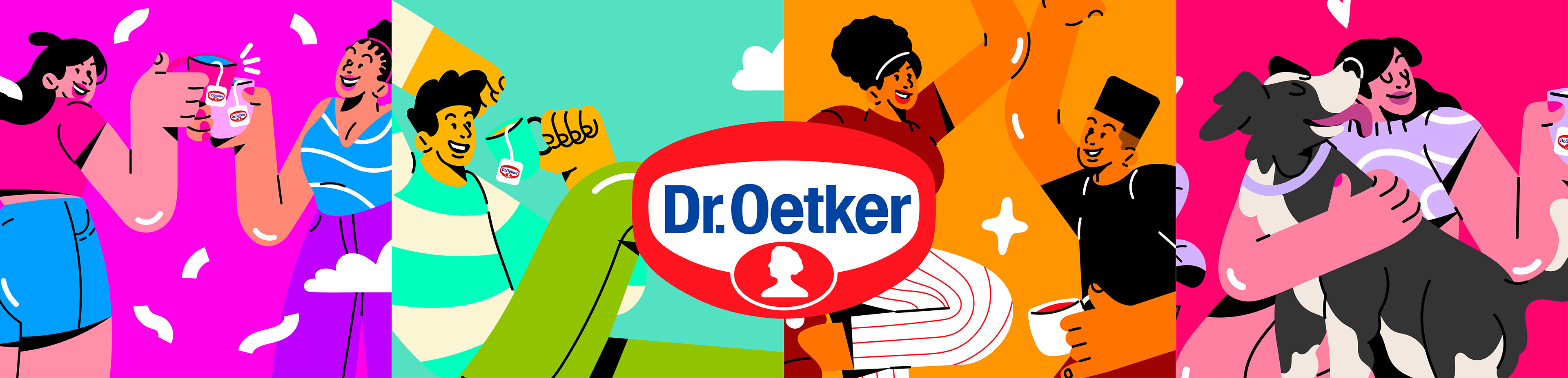 Developed for Dr. Oetker in collaboration with AMPFY, this campaign brings to life the concept “Love, dream, vibrate and smile.” The illustrations were created to promote the new line of Mixed Teas “Mais,” translating everyday emotions into vibrant visual stories.