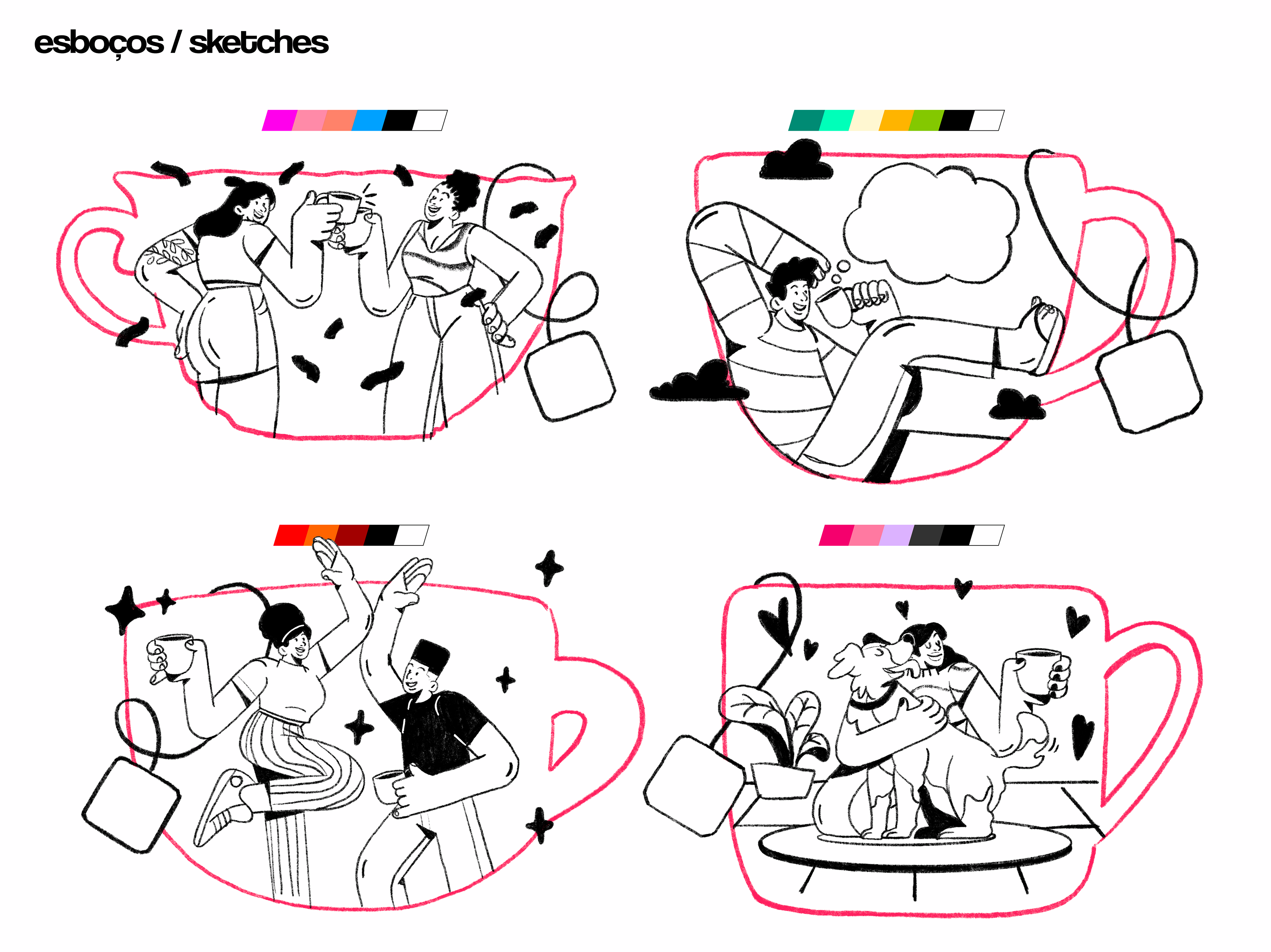 Each of the four illustrations represents a different flavor and motivation, designed to inspire small pauses, better moods, and more positive moments throughout the day. With bold colors, expressive characters, and dynamic compositions, the visuals amplify the campaign’s message and help build an emotional connection between the product and the consumer — turning a simple cup of tea into a moment of motivation.